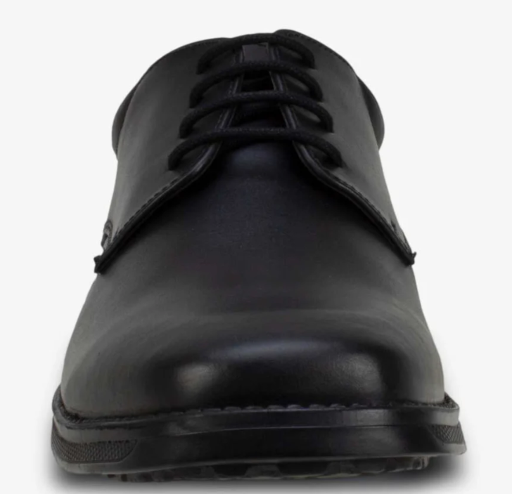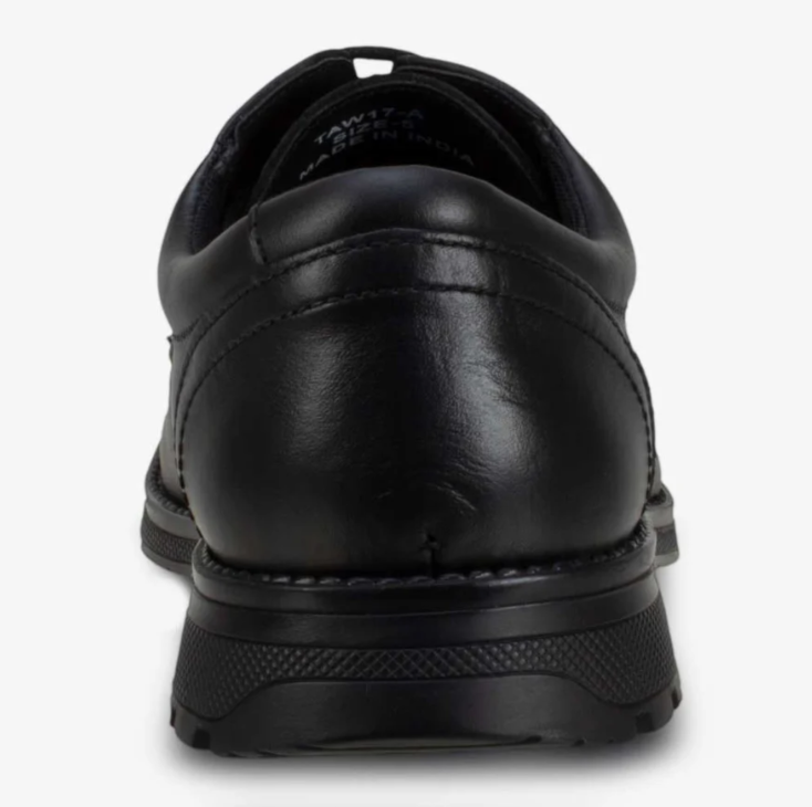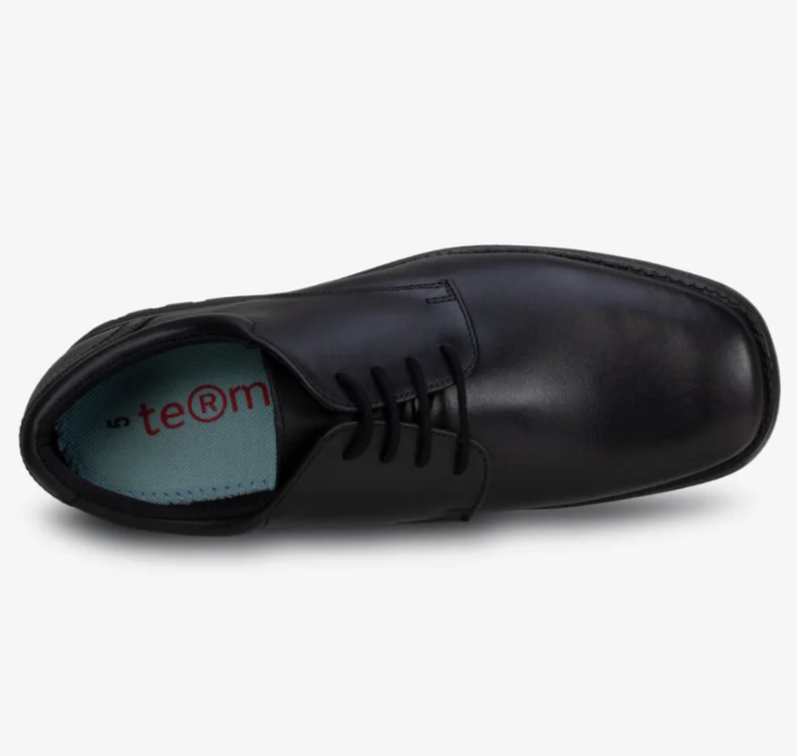 The Tyson Clerk by Term is designed with the senior school student in mind. A smart lace-up shoe crafted from dyed-through leather, which lessens scuffs and with a square toe finish for a fashionable look that teenagers love. The durable construction survives daily wear and tear. Added features such as soft padding around the ankle and memory foam insoles, ensure comfort all day. Feet are extra fresh as the insoles are treated with Microfresh antibacterial agent. A popular and fashionable style, the Clerk Tyson suits school, work experience, and special occasions, an ideal senior school shoe style.
