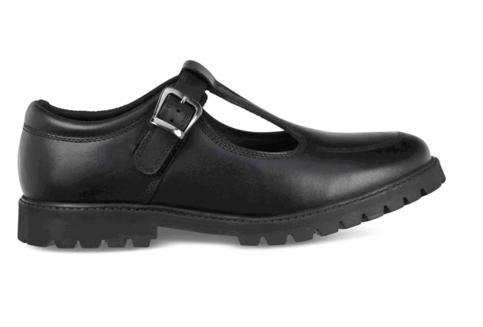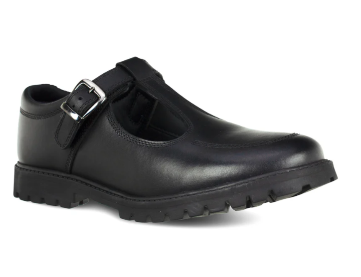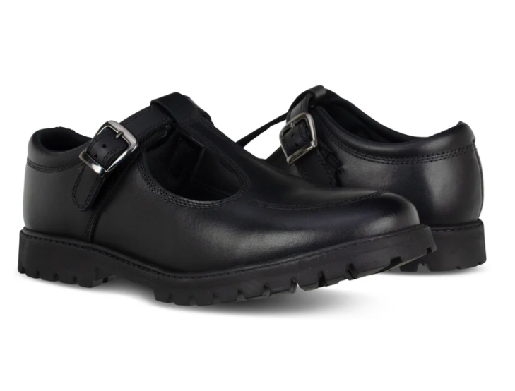 EMILY – Black Leather Buckle T-Bar School Shoes
