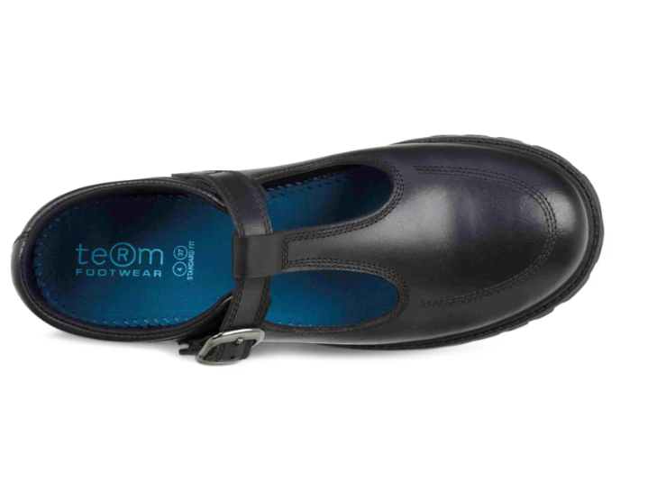 The Emily black leather from Term is the latest addition to the collection. An on-trend T bar for all ages. A leather buckle fastening is supported by durable elastic, allowing easy access everyday. The leathers are double dyed with comfort collars and soft insoles for all day wear.